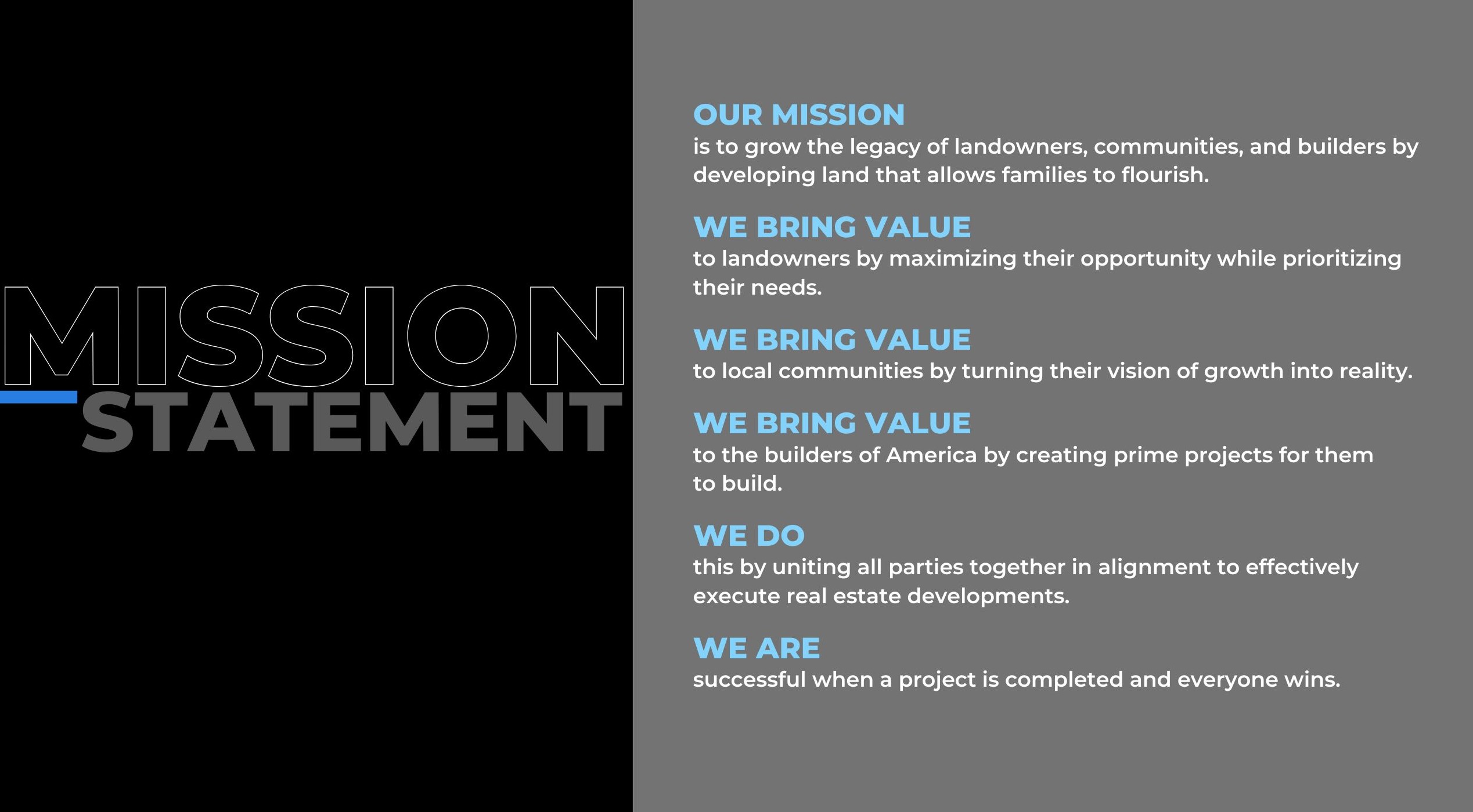 We will not ask a landowner to sign a lengthy one-sided agreement; we will always be clear on expected timelines and project feasibility; we welcome external review of our contract by a landowner’s attorney or broker; and we never enter a contractual agreement that we do not have the financial ability to close.